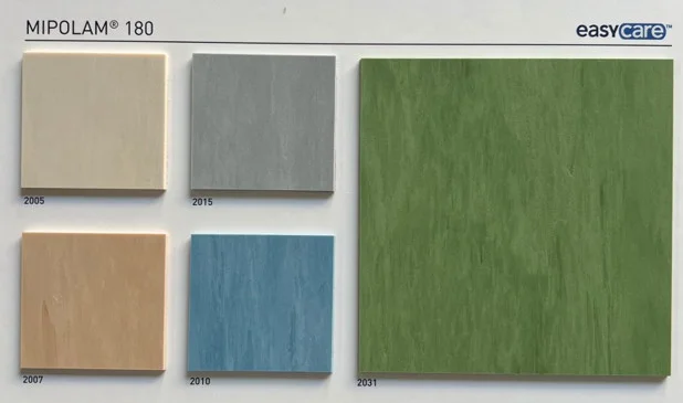 Gerflor Mipolam 180 cung cấp một loạt các tùy chọn về màu sắc và hoa văn, giúp dễ dàng kết hợp với thiết kế nội thất của các không gian khác nhau. Từ những màu sắc tươi sáng cho trường mầm non đến những gam màu trung tính và thanh lịch cho bệnh viện, mọi nhu cầu đều có thể được đáp ứng.